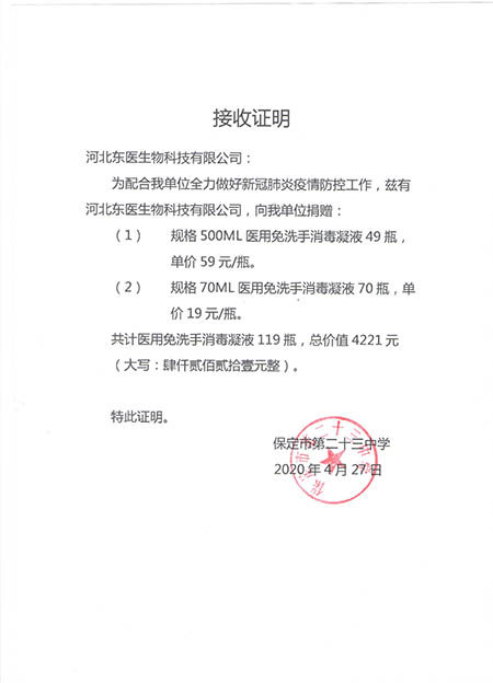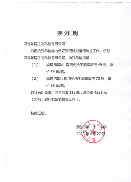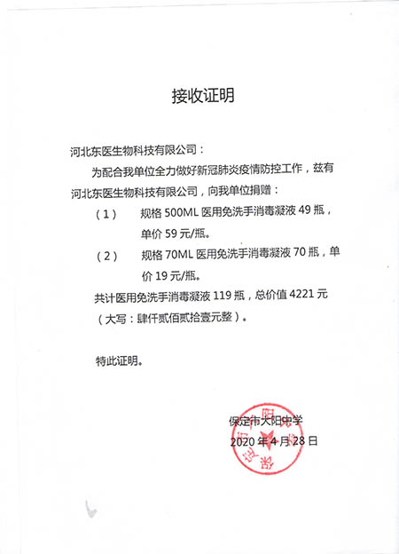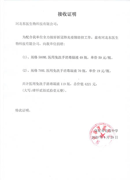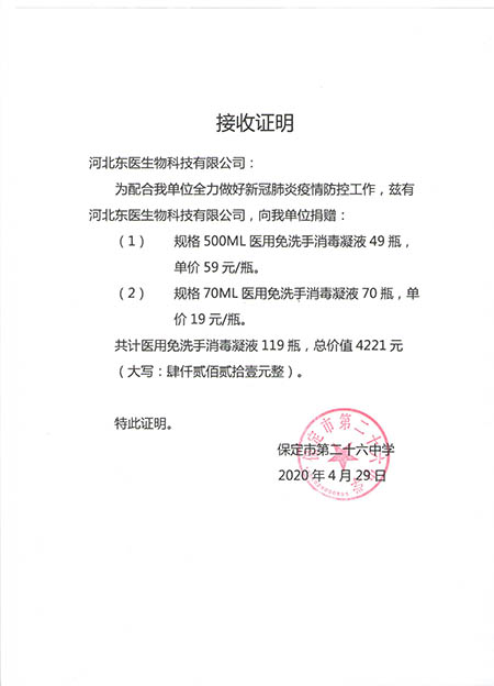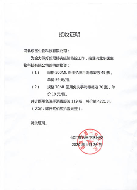 在本次新冠肺炎疫情期间,作为河北省工信厅(第四批)疫情防控重点保障物资生产企业,保定市应对新型冠状病毒感染的肺炎疫情工作领导小组物资保障组,保定市发改委疫情防控重点保障物资生产企业 人妻仑乱少妇A片,保定市政府消杀用品定点采购单位――东医生物积极捐赠消杀防疫物资,为以下系统及单位进行捐赠: 1,保定市区及22个县学校教育系统, 2,保定市第五医院,望都红十字会等卫生医疗系统, 3,保定火车站,客运中心等交通运输系统, 4,保定市科技局,交通局,卫健委等政府机关及数十家企事业单位, 累计捐赠免洗手消毒凝胶市场价值总计200余万元。